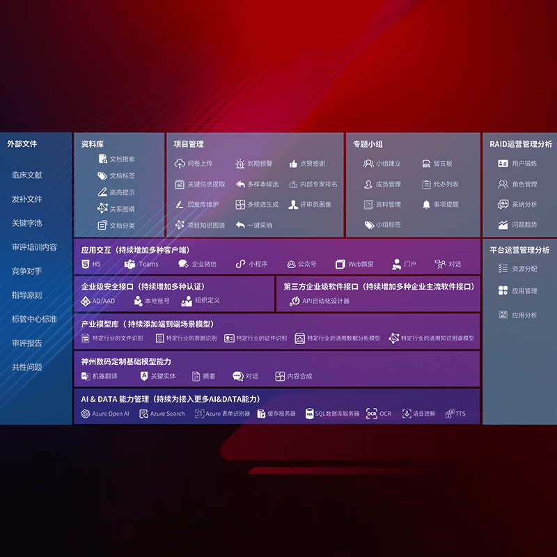 医疗器械产品上市前,,,,要熟悉严格与繁复评审标准,,,,整理分析监管机构指导文件中的海量信息。。企业急需一个智能化解决方案,,,,提升知识管理效率,,提高评审通过率,,以提升其市场竞争力。。