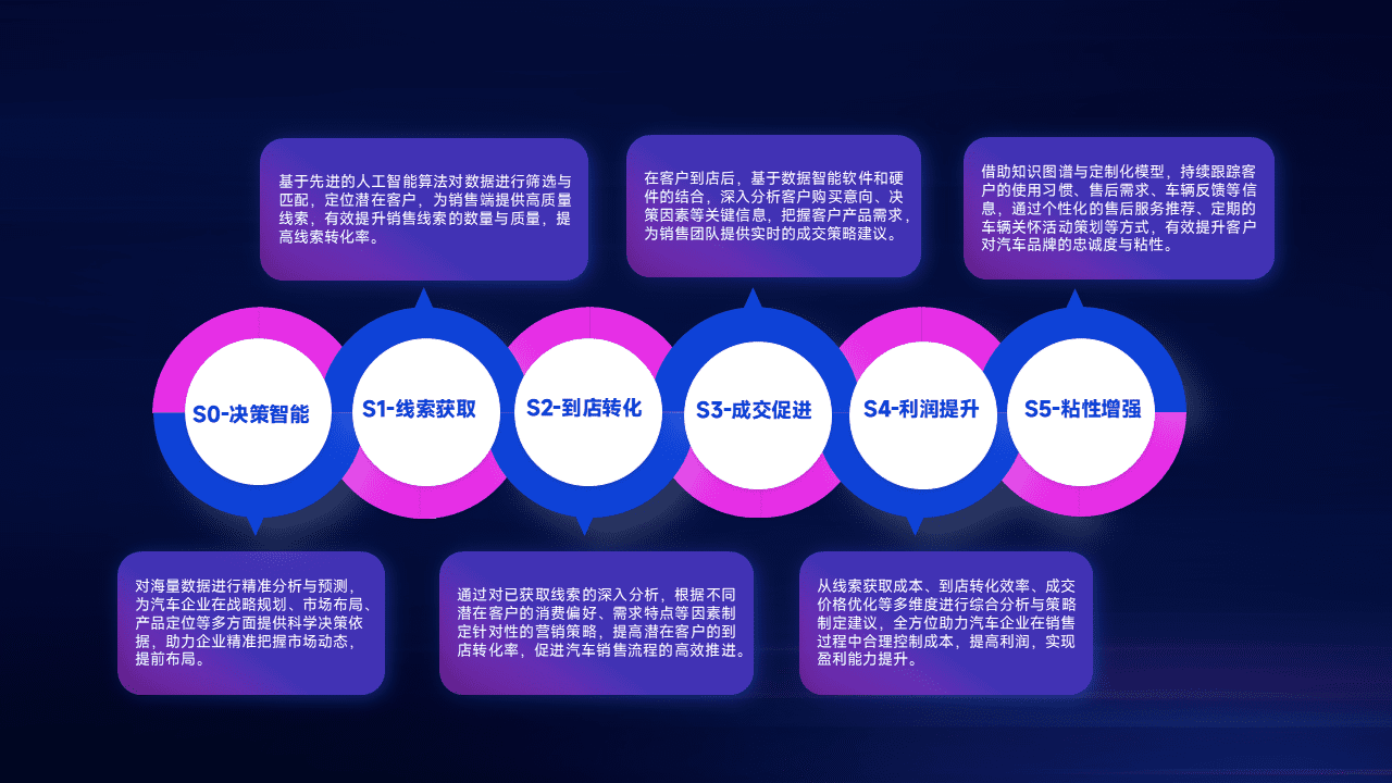 通过拓宽潜在客户来源、、、优化线索分配并提高到店转化率,,,以增强销售效率。。。同时,,利用线索数据不断优化分析模型,,有效提升转化率,,,,扩大营销影响力。。。